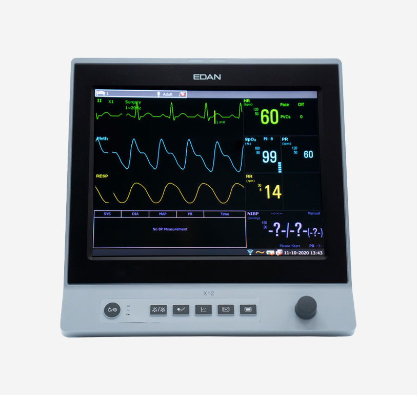 Discover the Edan X8/X10/X12, sophisticated and modern units designed to deliver extensive monitoring capabilities across diverse healthcare settings. The X Series showcases a high-resolution color display, offering crisp and detailed vital signinformation for effortless interpretation.
